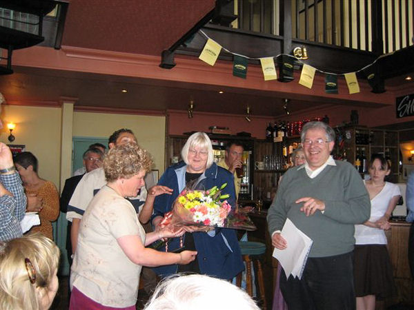 Anne making a presentation to Claudette, Steve's wife